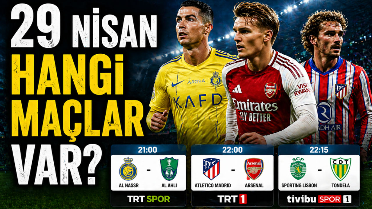 Futbolseverler 29 Nisan Çarşamba günü oynanacak karşılaşmaları araştırmaya başladı. Özellikle Avrupa kupaları, lig maçları ve yıldız futbolcuların sahaya çıkacağı mücadeleler nedeniyle “Bugün hangi maçlar var, saat kaçta, hangi kanalda?” soruları gündemde yer alıyor. İşte 29 Nisan Çarşamba gününün öne çıkan maç programı ve yayın bilgileri.