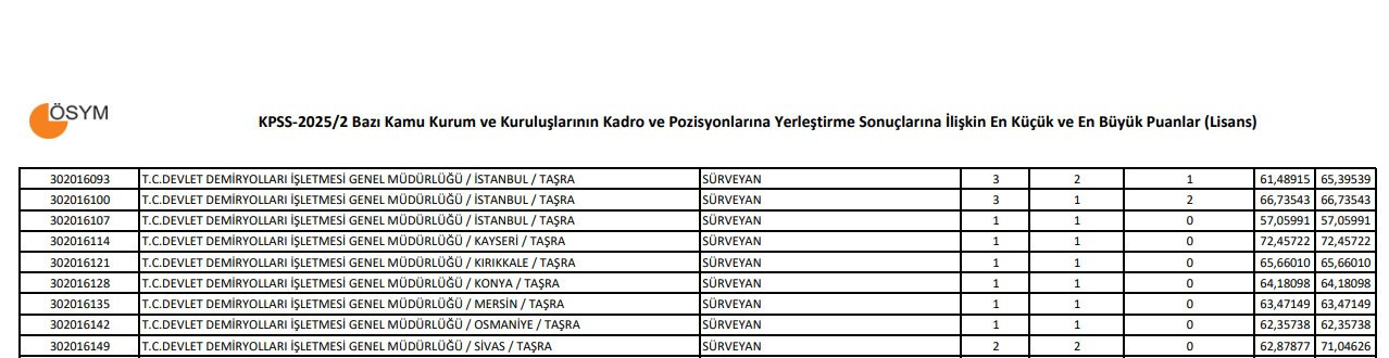 KPSS 2025/2 yerleştirmelerinde en çok konuşulan kadrolardan biri Sürveyan oldu. Lisans düzeyinde yapılan yerleştirmelerde, Sürveyan kadrosuna 61,49 puanla atama yapılırken, açılan 3 kişilik kontenjanın 1’inin boş kaldığı görüldü.