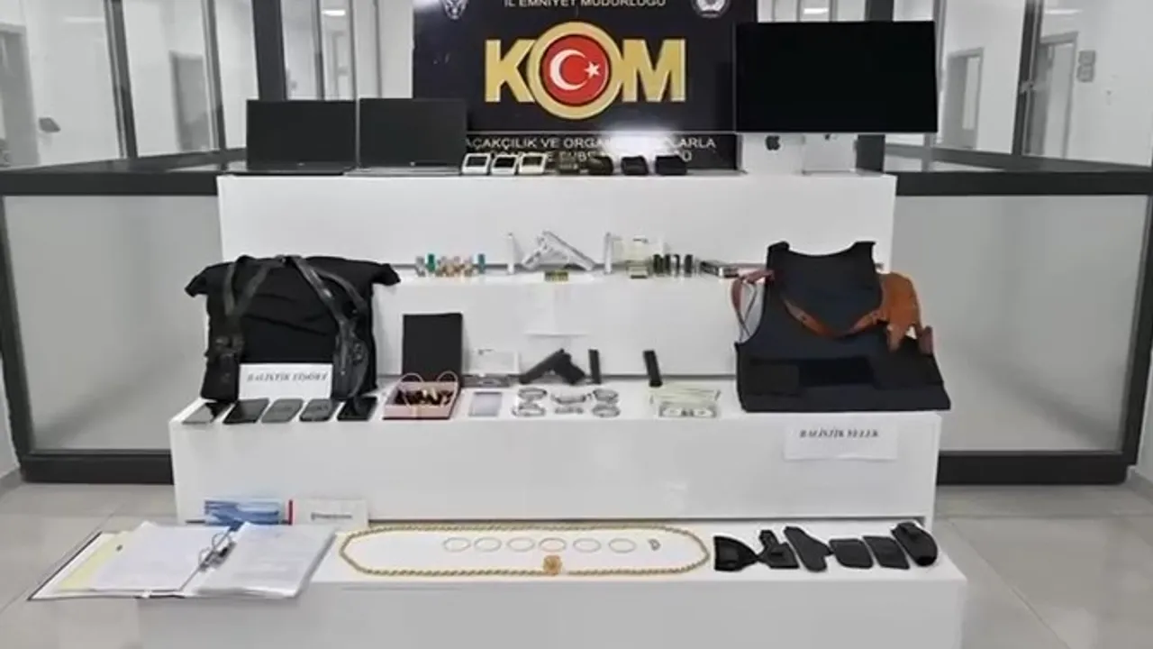 Şüphelilerin ikamet, iş yeri ve araçlarında yapılan aramalarda; 2 tabanca, 2 tüfek, 2 balistik yelek, 91 fişek, 8 tabanca kılıfı, 2 kelepçe, suçtan elde edildiği değerlendirilen ziynet eşyası ve döviz, çok sayıda çek, 7 POS cihazı, 11 adet uyuşturucu-uyarıcı hap ile çok sayıda dijital materyal ele geçirildi.