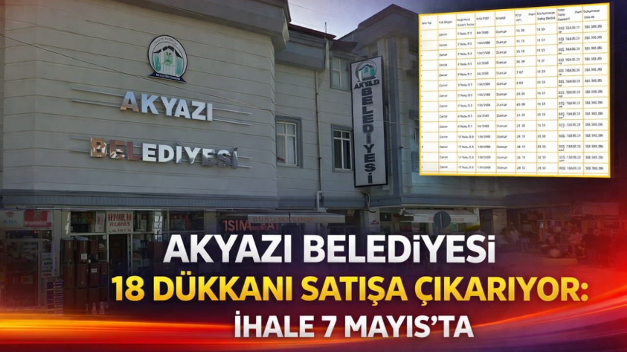 2886 sayılı Devlet İhale Kanunu’nun 45. maddesine göre düzenlenecek ihale, 7 Mayıs 2026 Perşembe günü saat 10.30’da Akyazı Belediyesi Meclis Toplantı Salonu’nda encümen huzurunda gerçekleştirilecek.