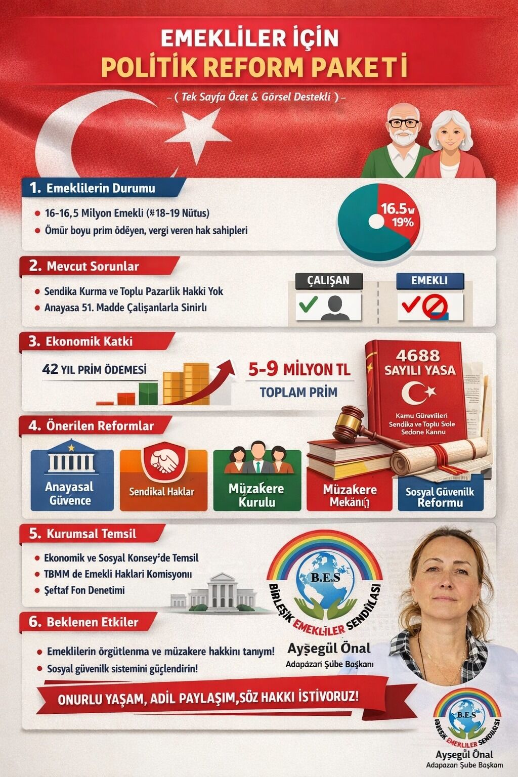 Önal, çözüm olarak “Emekliler Sendikası ve Müzakereci Temsil Sistemi” modelini önerdiklerini belirtti. Bu sistemle emeklilerin kamu kurumlarıyla düzenli ve zorunlu müzakere yürütebileceğini ifade eden Önal, şu bilgileri paylaştı: