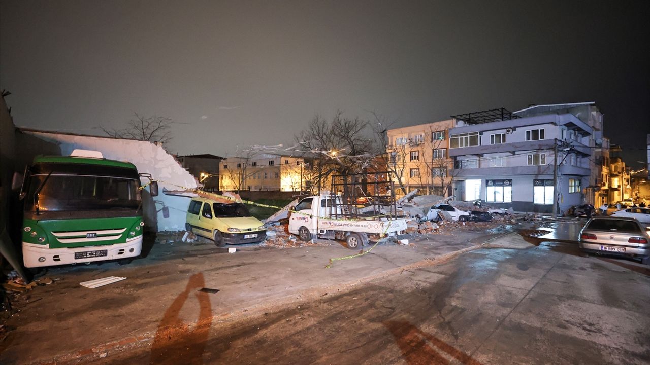 Arabayatağı Mahallesi Asil Sokak'ta bir oto servisinin otoparkının yaklaşık 5 metre yükseliğindeki duvarı kuvvetli rüzgar nedeniyle devrildi.