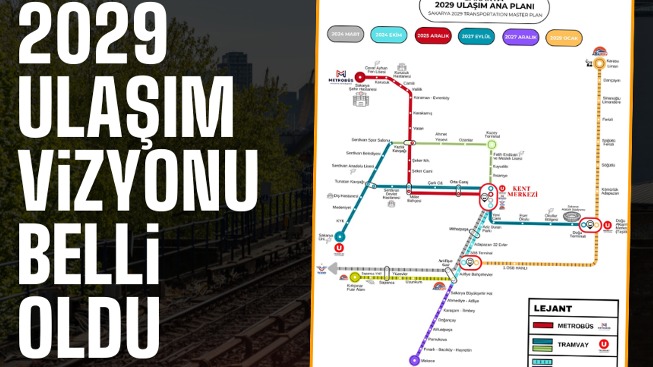 Yayınlanan detaylı çizimde şehirde hayata geçirilmesi planlanan tramvay, metrobüs ve Adaray hatlarının güzergâhları ile hizmete giriş tarihleri tek tek yer aldı. Ulaşım yatırımları, Sakarya’nın gelecek yıllarda alacağı yeni ulaşım şeklinin adeta haritasını ortaya koydu.