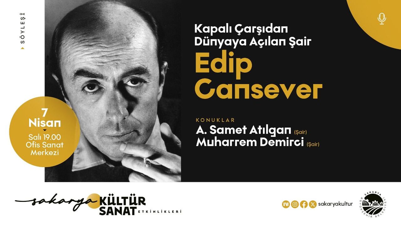 7 Nisan Salı günü saat 19.00’da gerçekleştirilecek “Kapalı Çarşı’dan Dünyaya Açılan Şair” başlıklı programda, Edip Cansever’in edebi kişiliği, şiir anlayışı ve düşünce dünyası ele alınacak. Söyleşiye şairler Samet Atılgan ve Muharrem Demirci konuk olarak katılacak.
