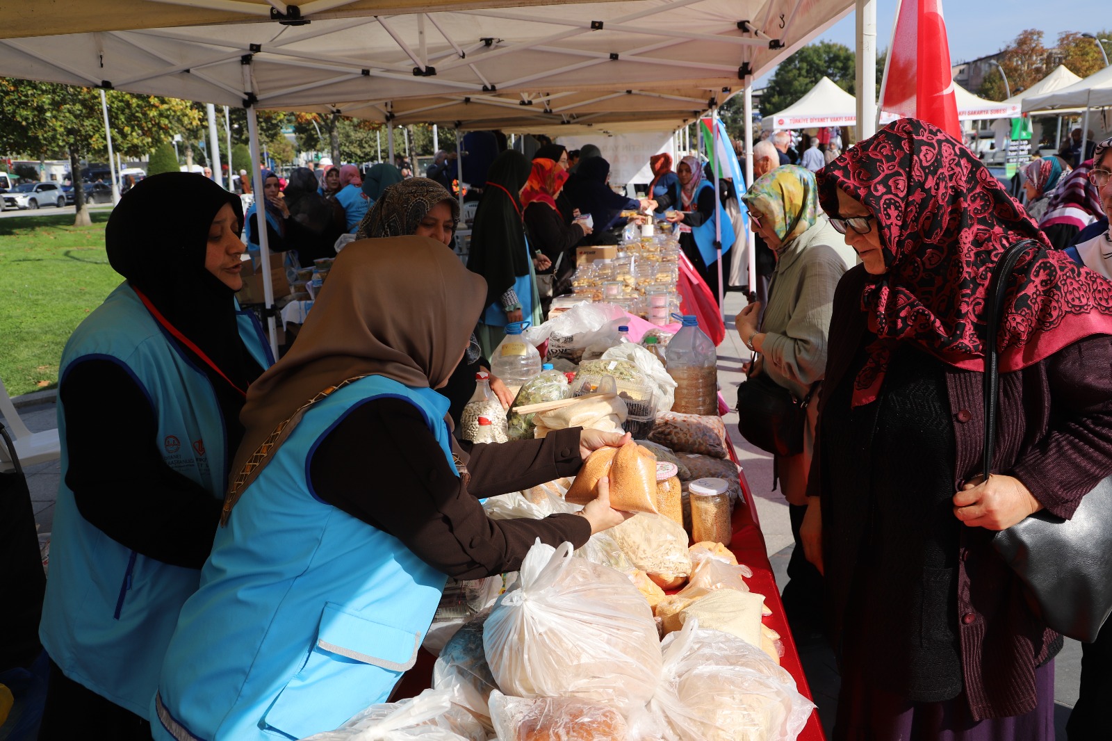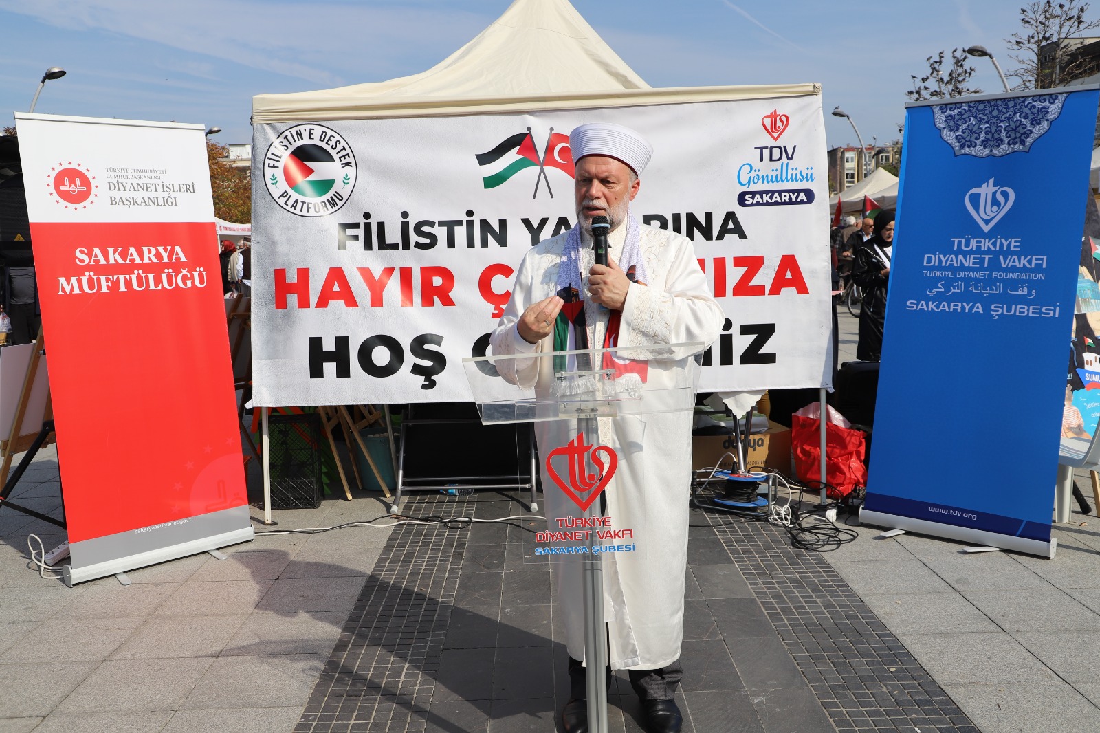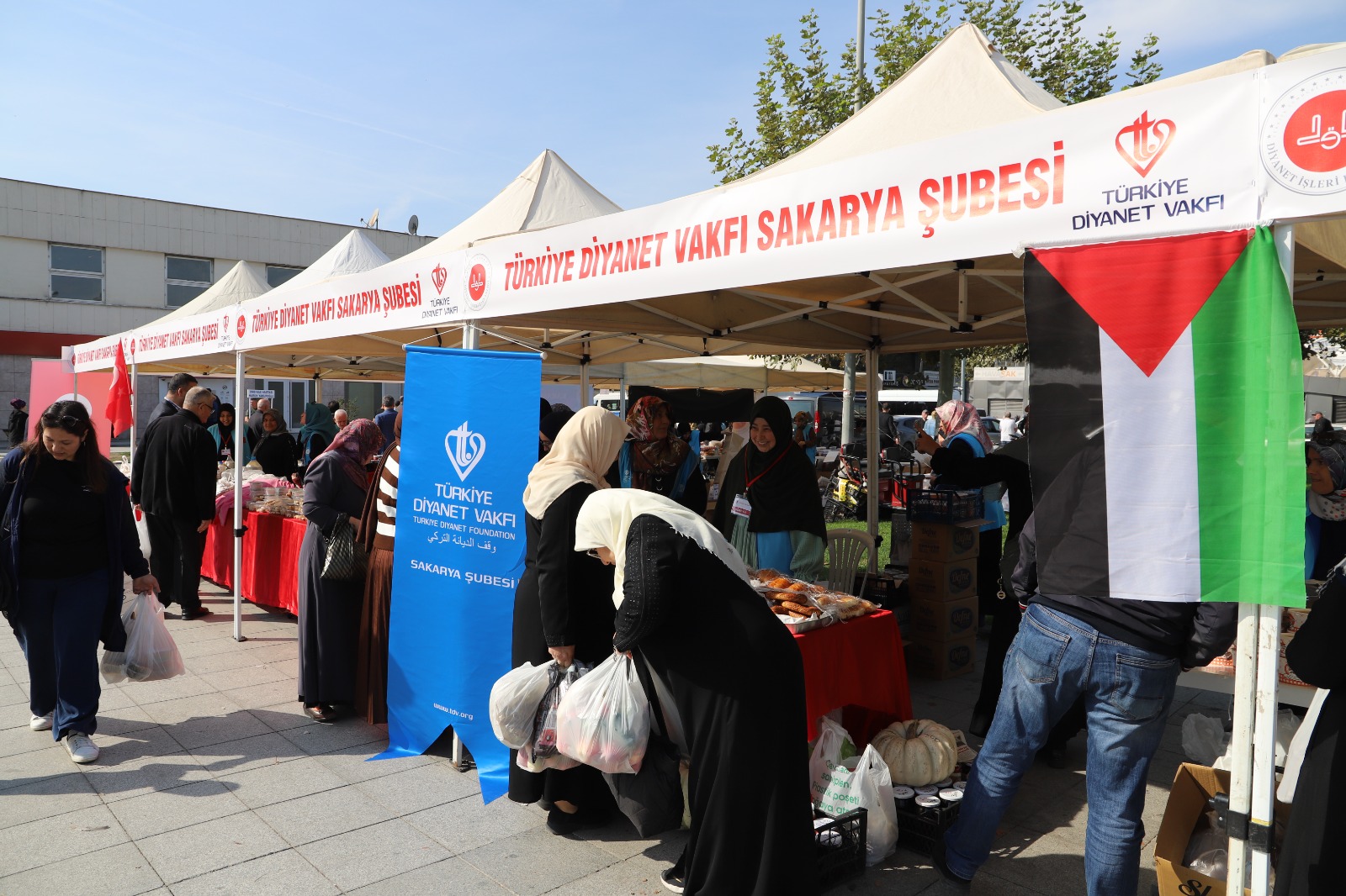 Türkiye Diyanet Vakfı (TDV) Sakarya Şubesi ve TDV Sakarya Kadın Kolları öncülüğünde, Filistin’e Destek Platformu gönüllülerinin katkılarıyla “Filistin Yararına Hayır Çarşısı” Gar Meydanı’nda açıldı.