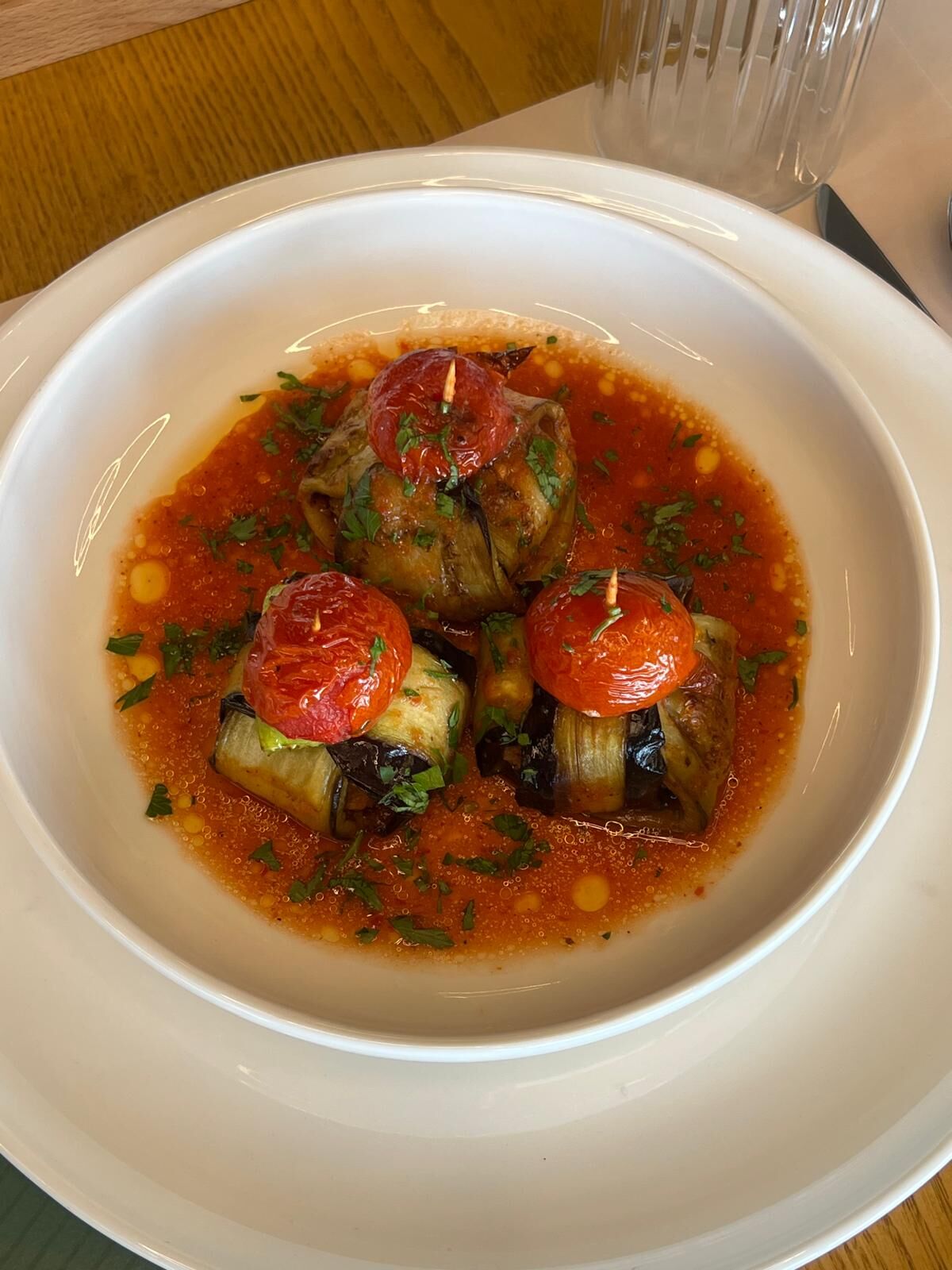 Tabağa yayılan sosun parlak kırmızısı ve üzerine serpiştirilen ince kıyım maydanoz, bu klasik lezzete modern bir şıklık kazandırıyor. İslim kebabı; mutfakta sabır isteyen ama sofraya geldiğinde emeğin karşılığını fazlasıyla ödeyen bir başyapıttır. Her lokması hem gelenek hem estetik taşır.