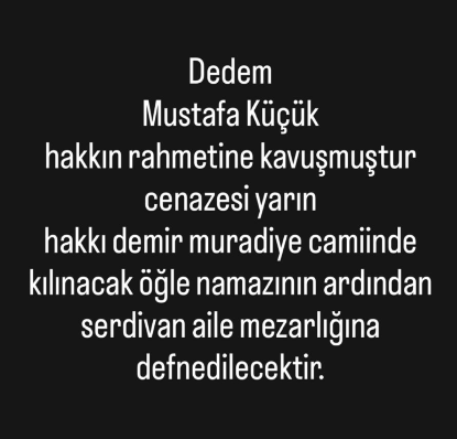 Torunu tarafından yapılan paylaşımda ise cenaze bilgilileri yer aldı.
