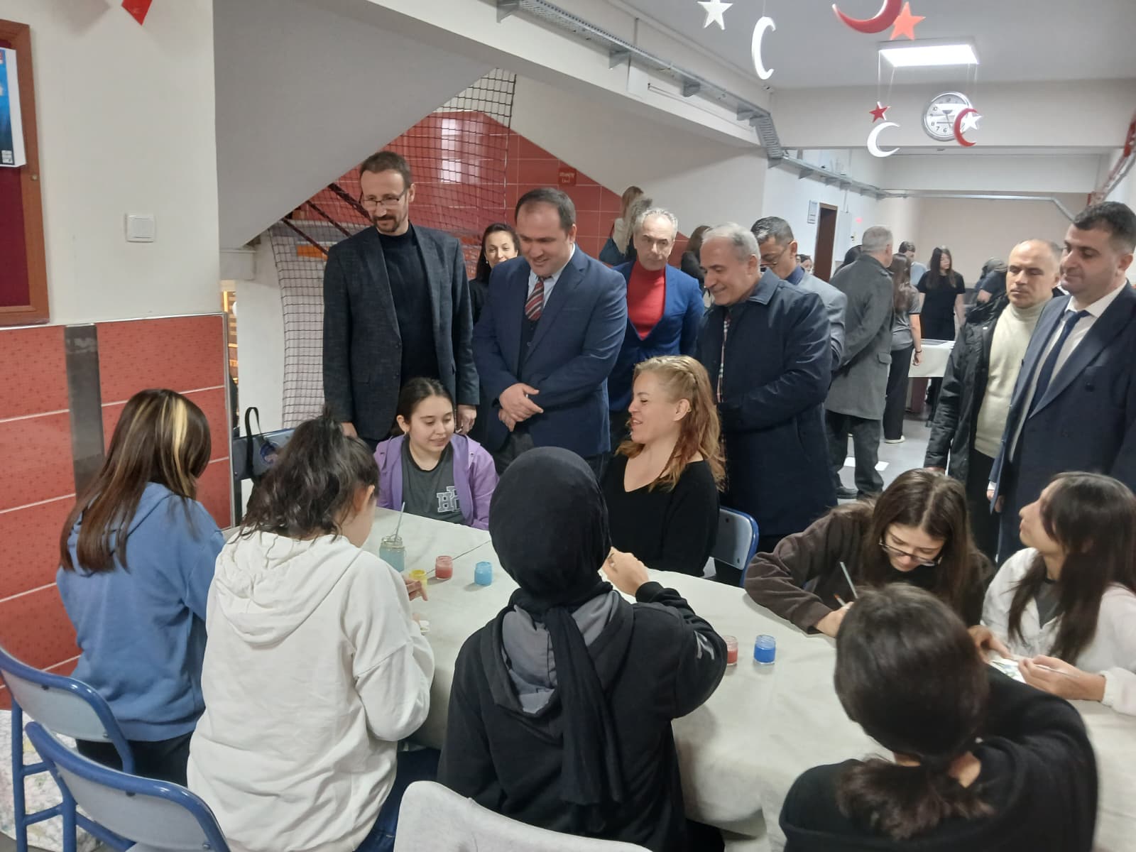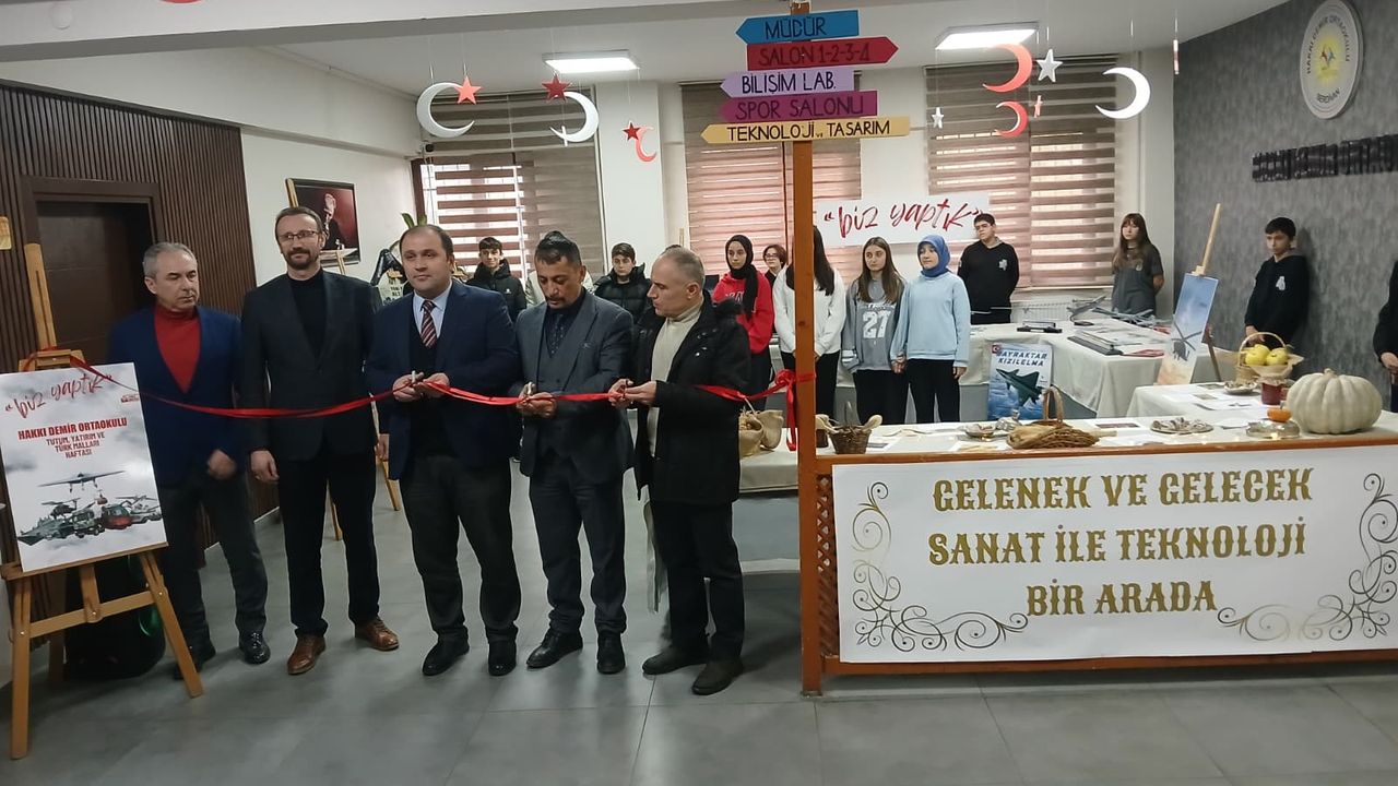 Hakkı Demir Ortaokulu yönetici ve öğretmenlerinin örnek ev sahipliği yaptığı sergide, yerli ve milli ürünlerin yanı sıra Ebru ve Çini sanatlarına ait uygulamalar da büyük beğeni topladı.