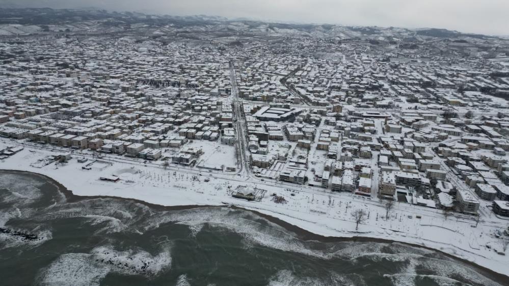 Bembeyaz örtüyle kaplanan kumsalda dalgaların kıyıya vurması, izleyenlere adeta kartpostalları aratmayan manzaralar sundu.