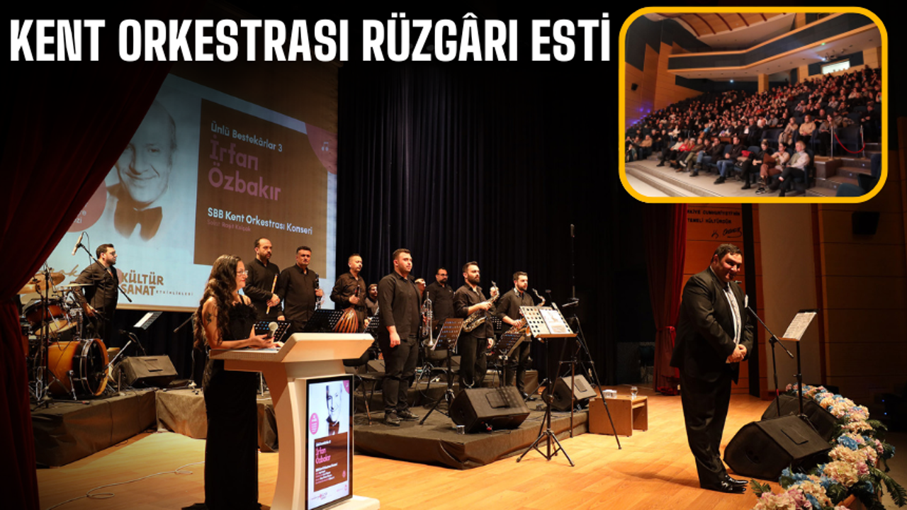 “Ünlü Bestekârlar – İrfan Özbakır” temasıyla düzenlenen Kent Orkestrası Konseri, yoğun katılımla gerçekleştirildi. Türk müziğinin seçkin bestekârlarına ait eserlerin seslendirildiği gecede, Kent Orkestrası’na solist olarak Raşit Kolçak eşlik etti. Kolçak’ın yorumladığı eserler, izleyicilerden büyük beğeni topladı.