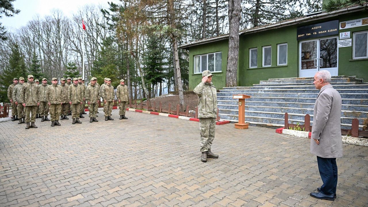Mehmetçik tarafından karşılanan Turan, askerlerle sohbet ederek bayramlarını kutladı.