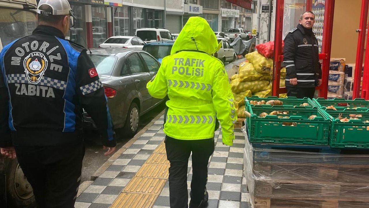 Denetimlerde, bazı iş yerlerinin kaldırım üzerine koyduğu reklam dubaları ile market önlerinde bulunan tezgahların yayaların geçişini engellediği tespit edildi.