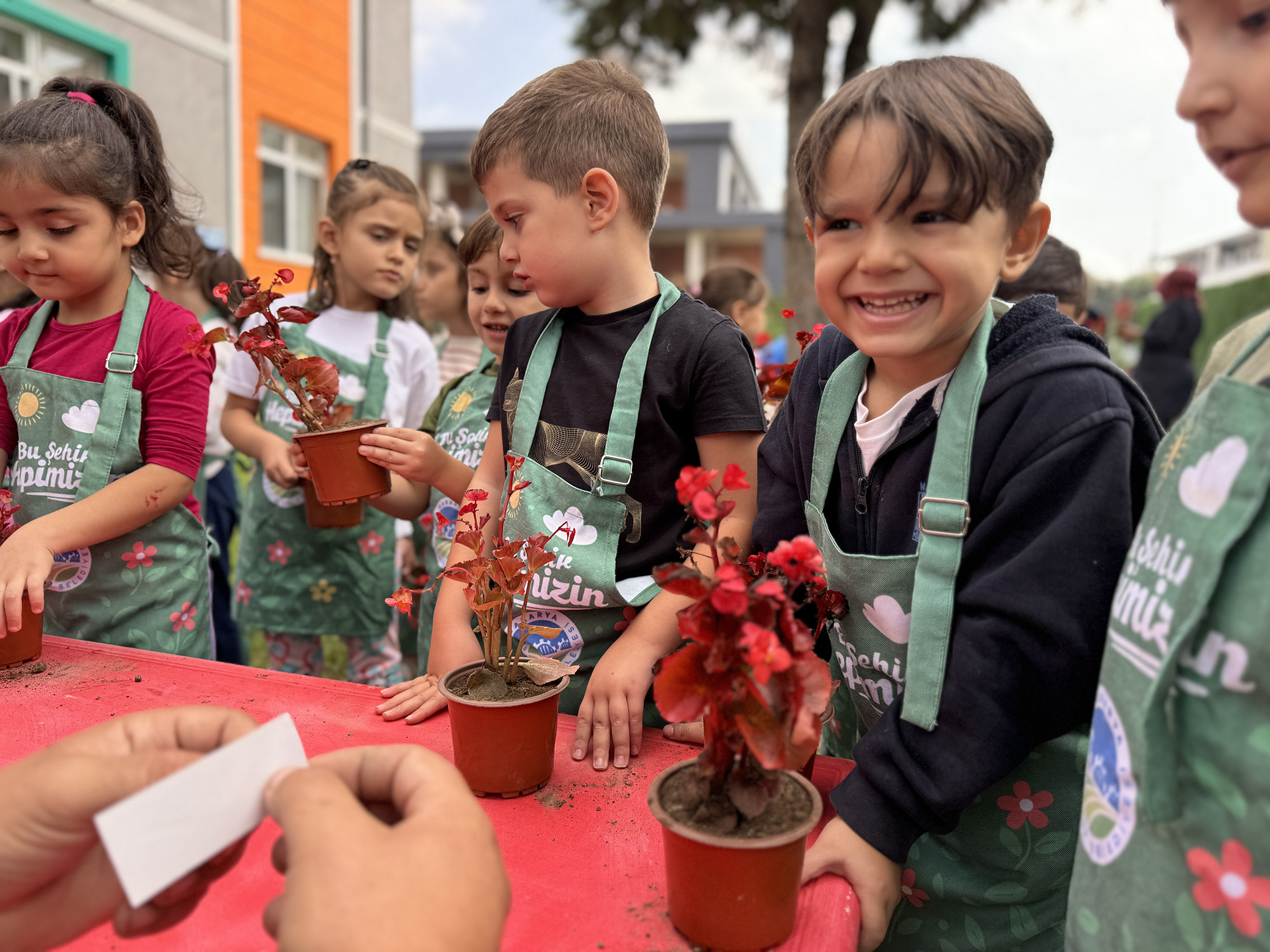 Minikler, diktikleri çiçeklere kendi isimlerini vererek onlara ilk can sularını döktü. Renkli etkinlikte çocukların mutluluğu yüzlerine yansıdı. Doğayla buluşmanın ve emek vererek çiçek yetiştirmenin sevincini yaşayan minik bahçıvanlar, çevreye katkı sağlamanın önemini de öğrendi.