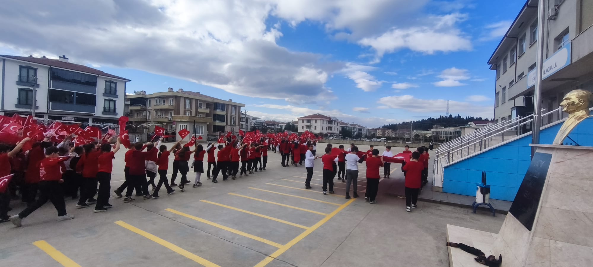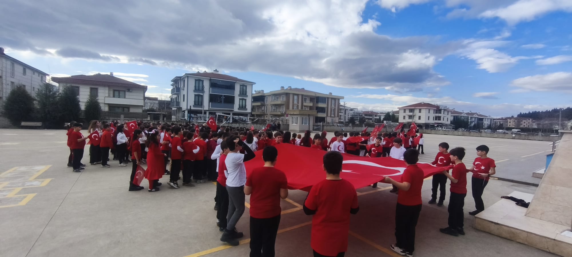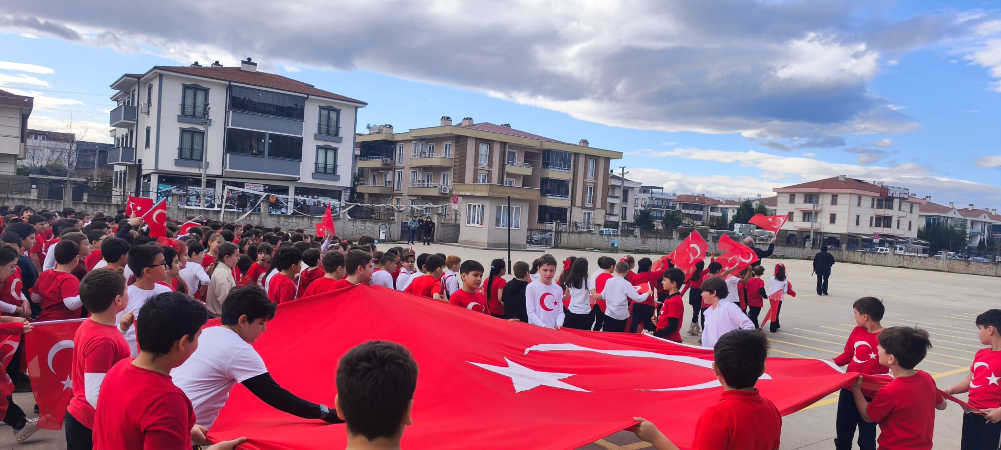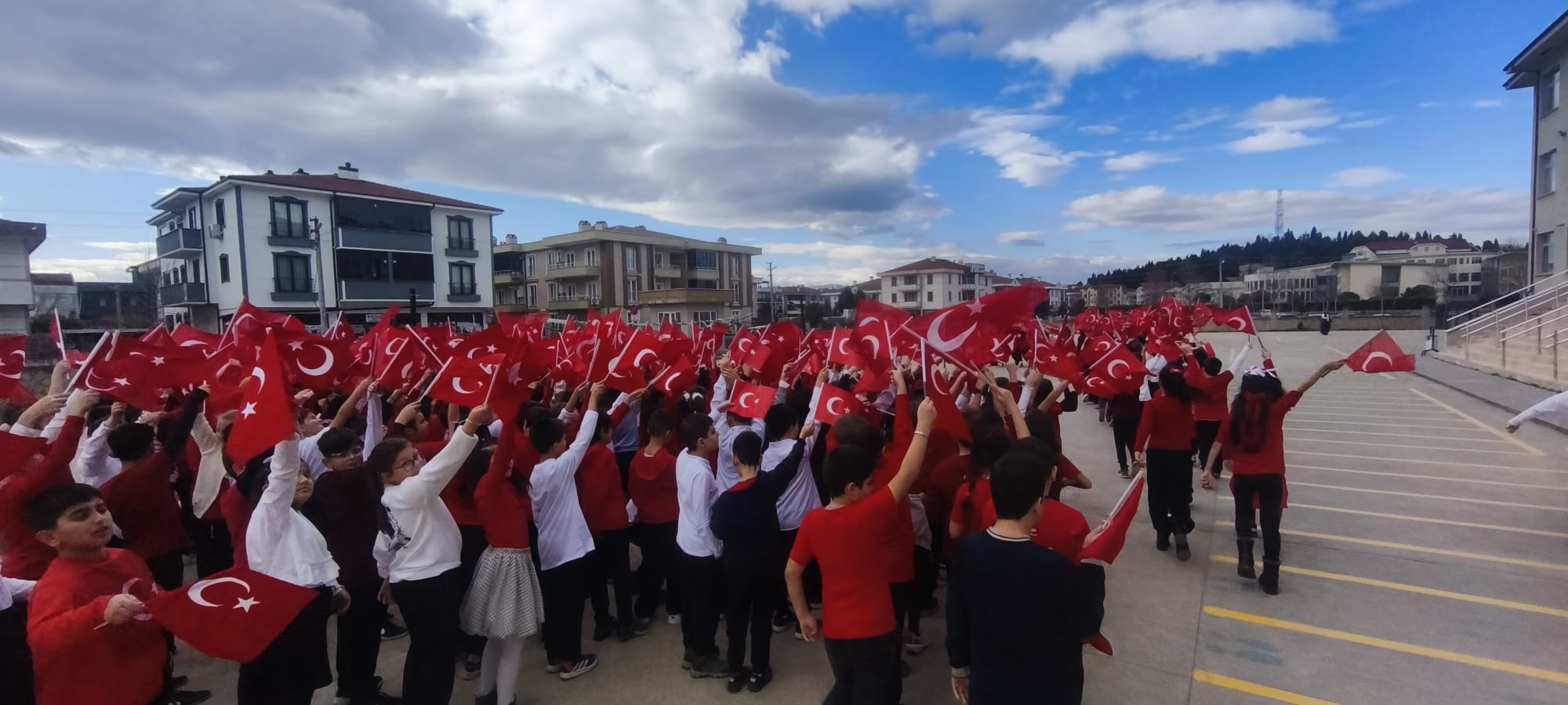 Tamamı öğrencilerin duygu ve düşüncelerinden yola çıkılarak oluşturulan şiir, yapılan beste çalışmasının ardından okul bahçesinde çekilen görüntülerle kliplendirildi. Çekimlerde drone kullanılması projeye ayrı bir görsel zenginlik katarken, yukarıdan alınan görüntülerde öğrencilerin bayrak temalı koreografileri izleyenlere duygu dolu anlar yaşattı.