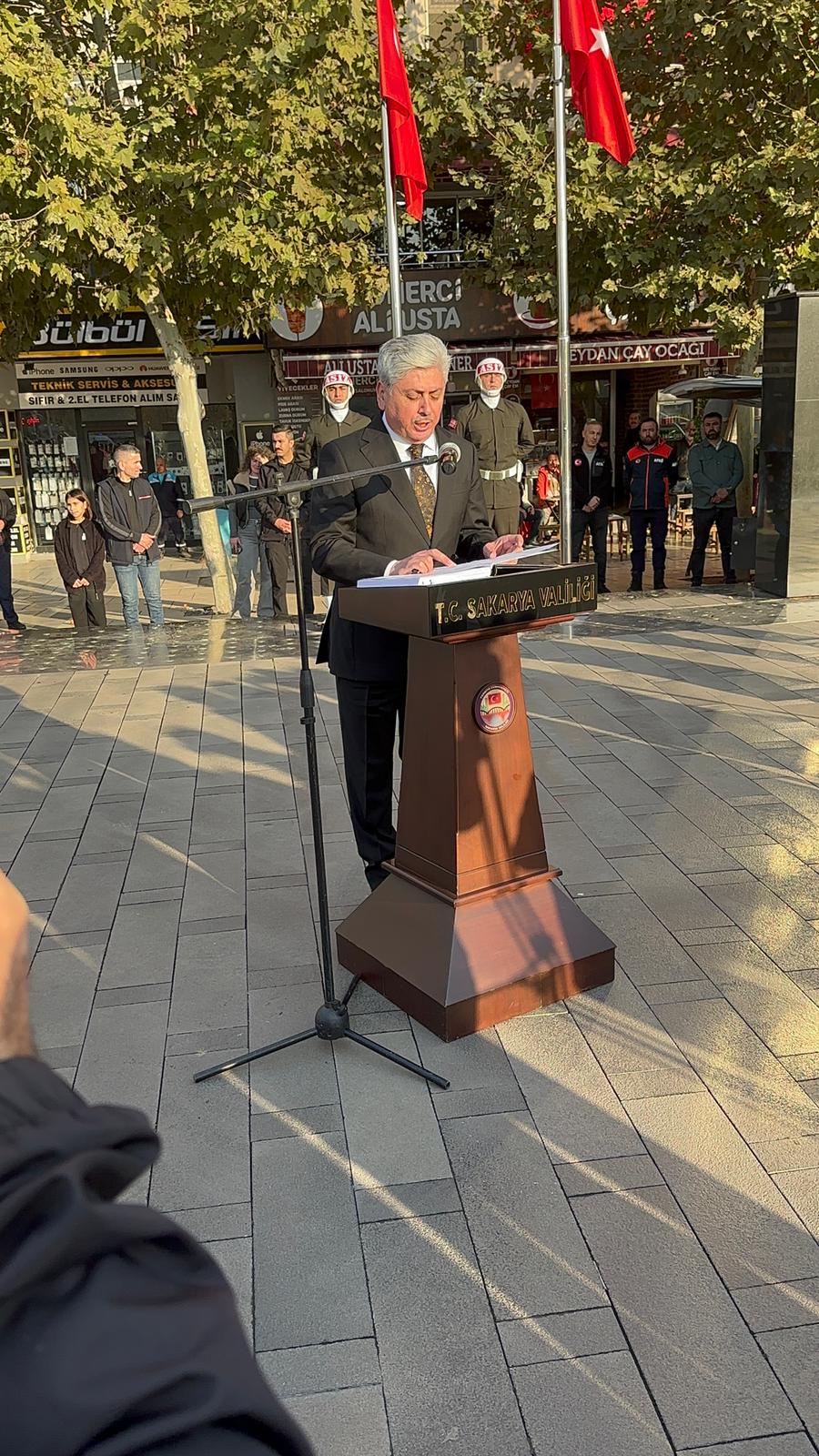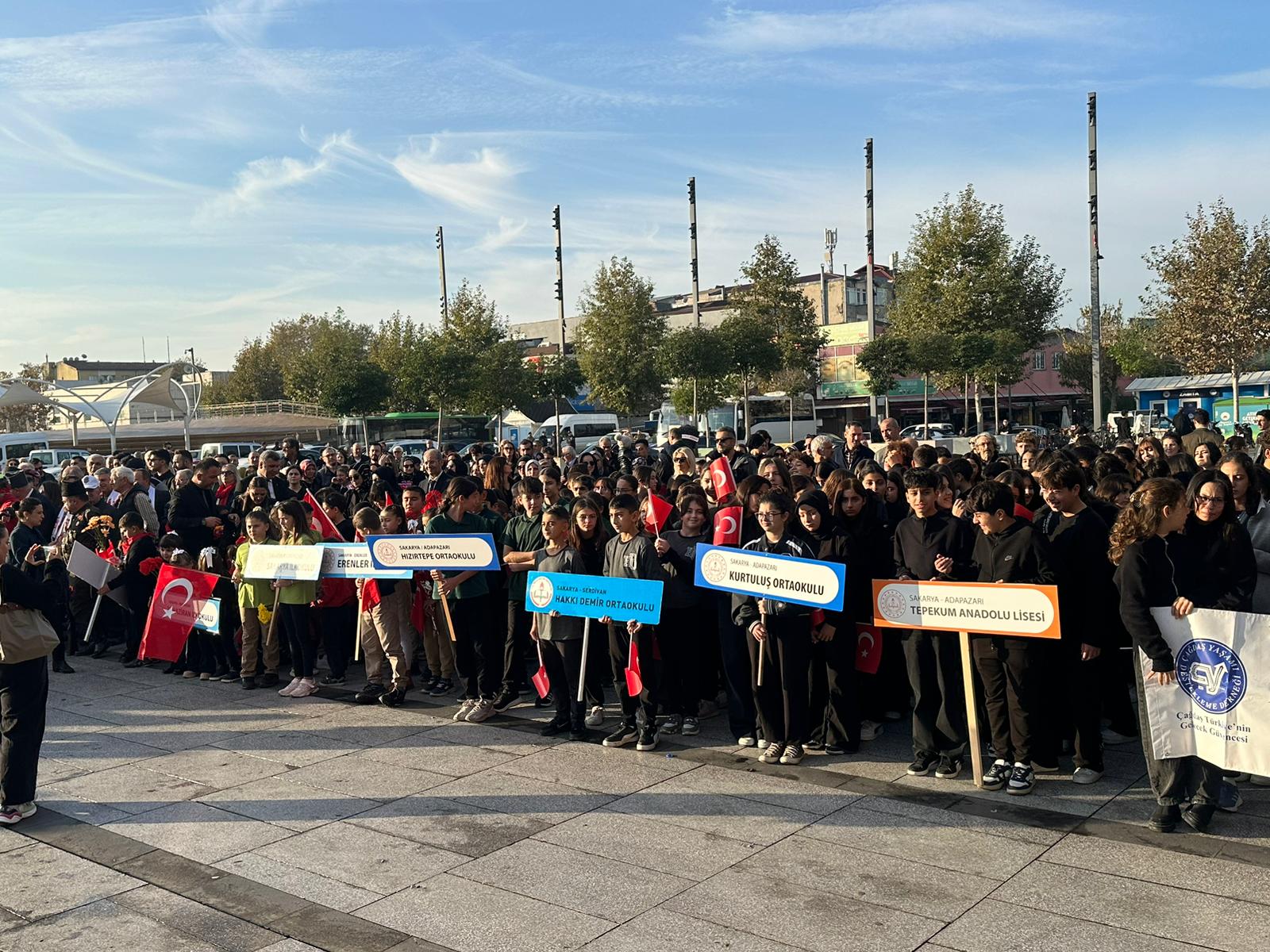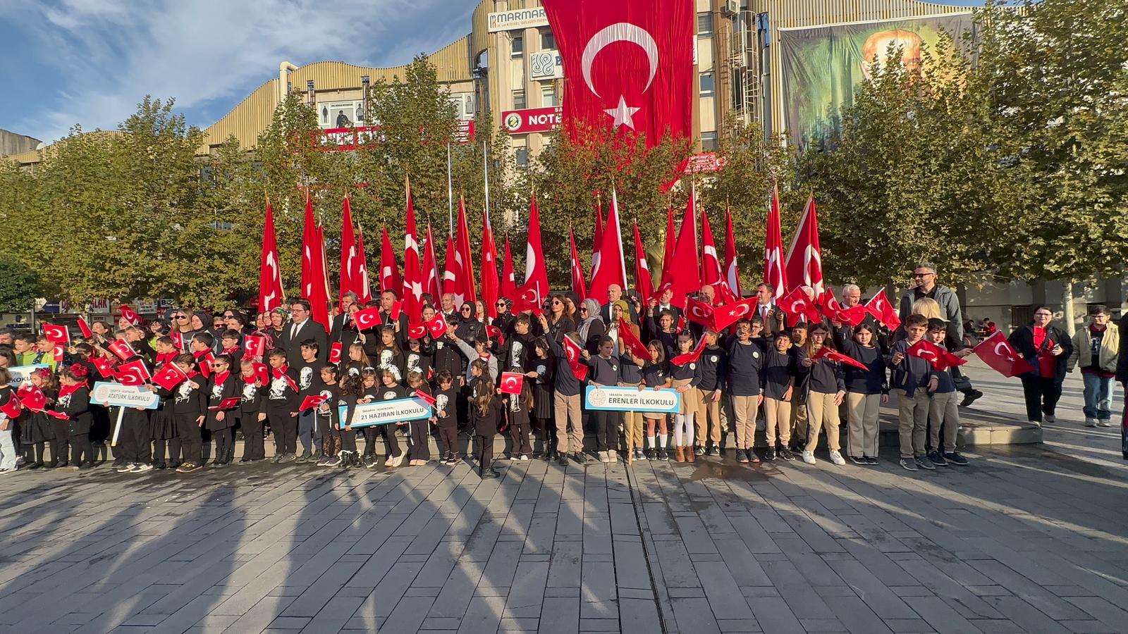 Adapazarı Demokrasi Meydanı’nda gerçekleştirilen törende, Kurtuluş Savaşı’nın Başkomutanı ve Türkiye Cumhuriyeti’nin ilk Cumhurbaşkanı Atatürk saygı ve minnetle yad edildi.