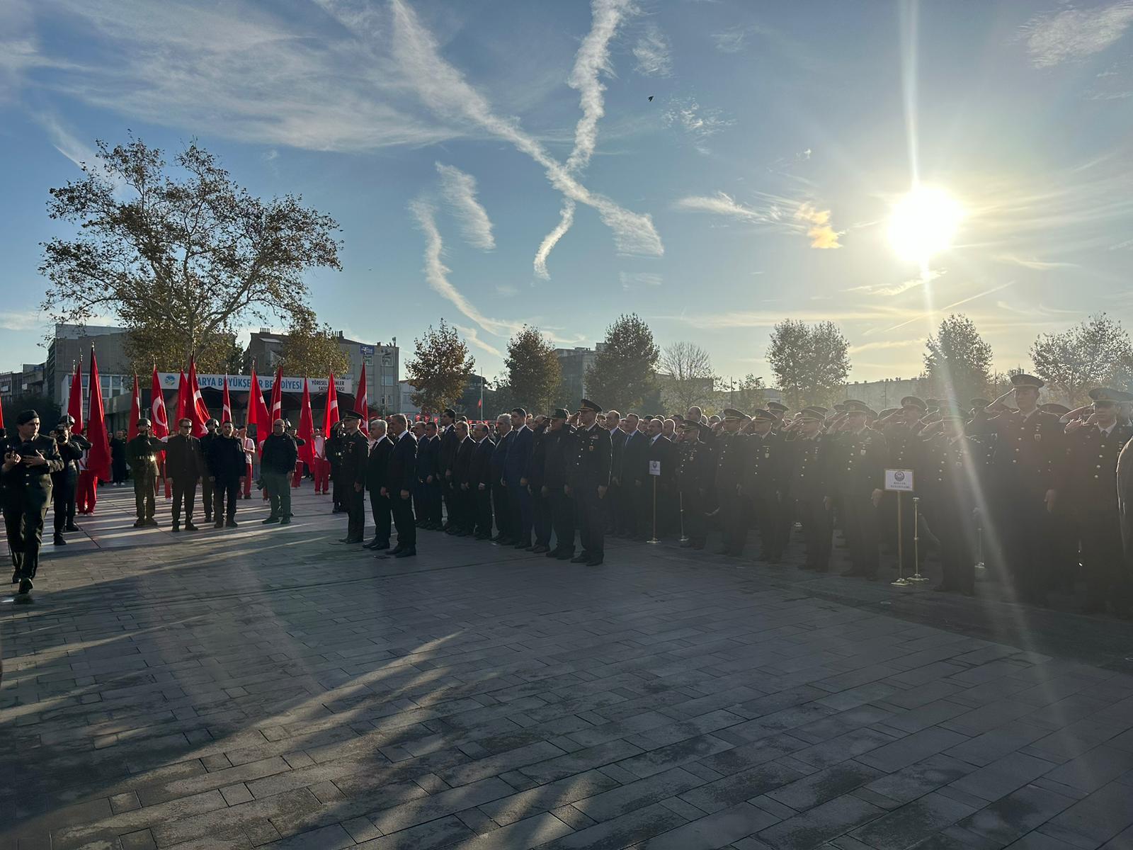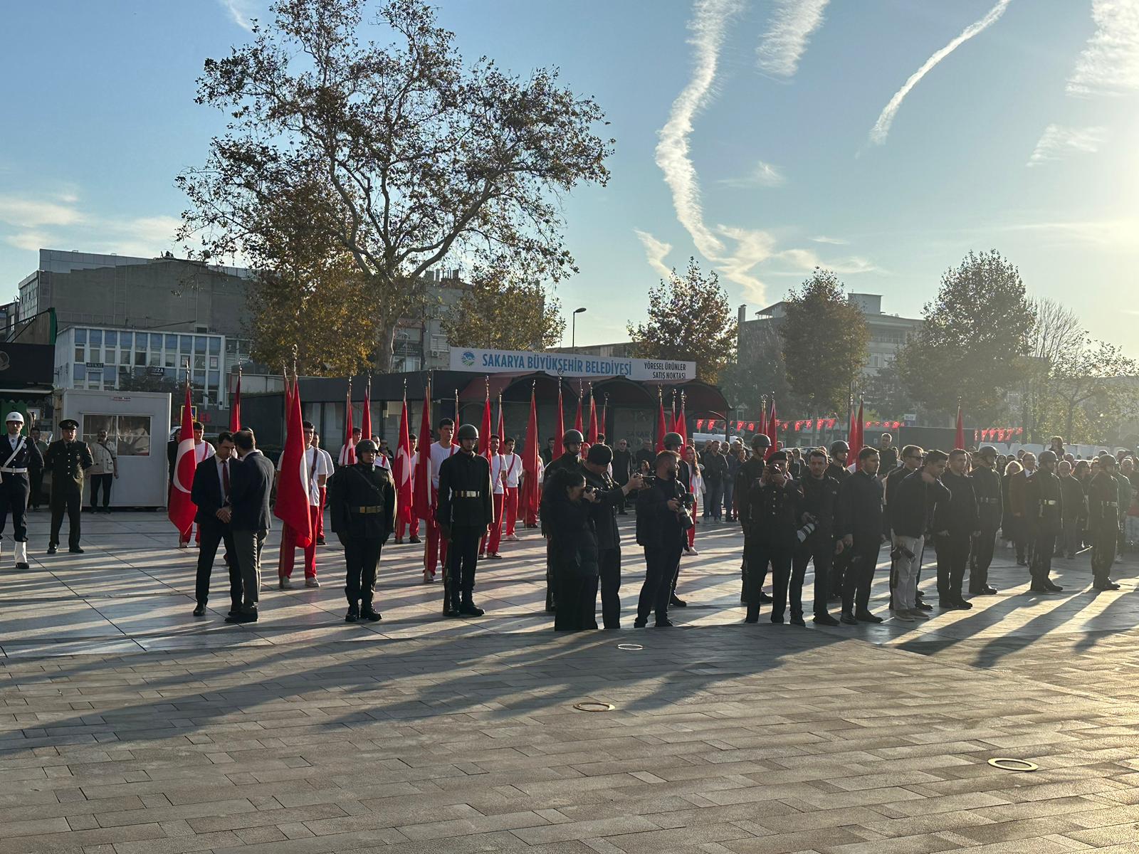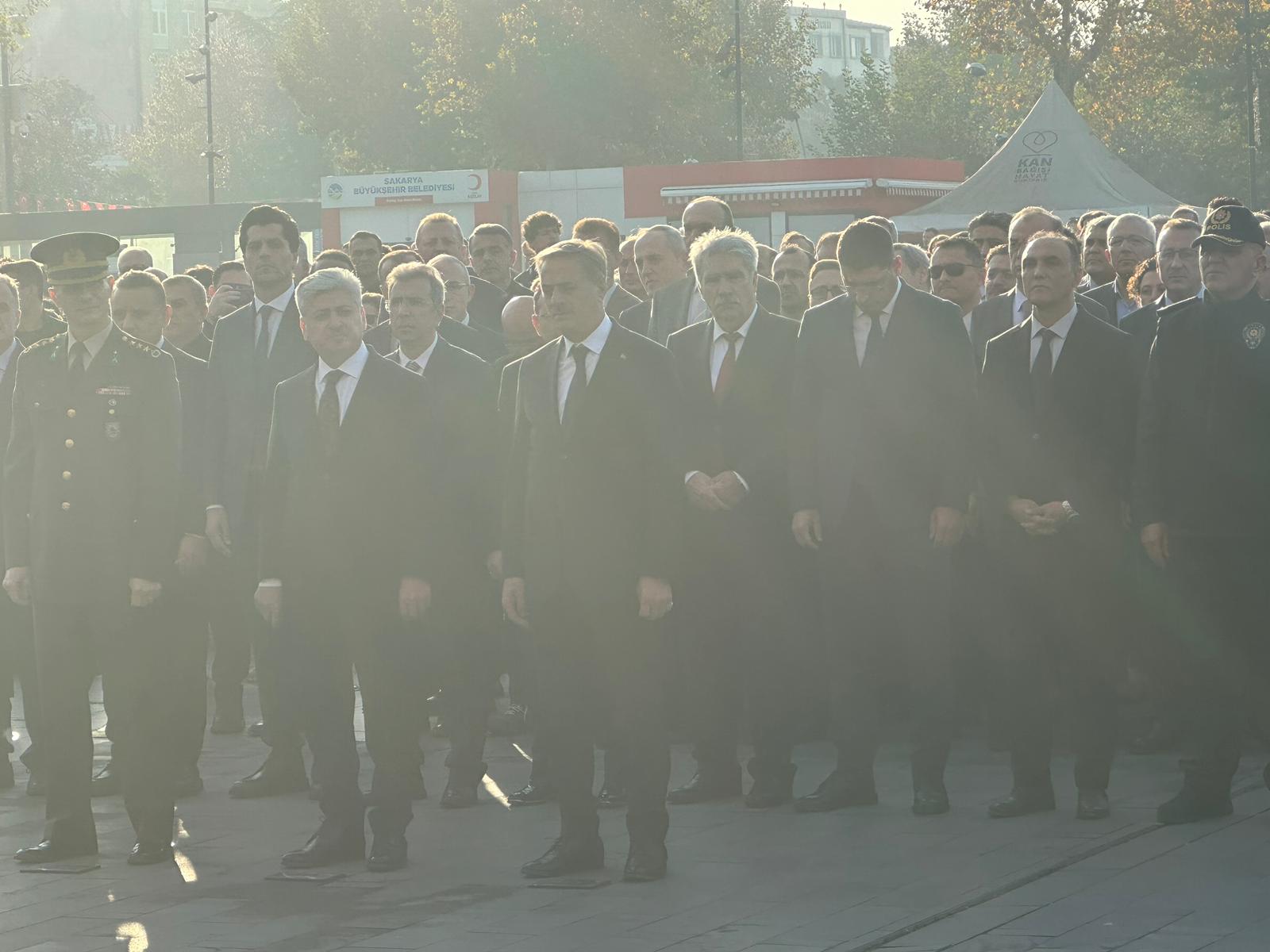 Saat 09.05’te sirenlerin çalmasıyla birlikte hayat adeta durdu. Tüm Türkiye’de olduğu gibi Sakarya’da da vatandaşlar, öğrenciler ve protokol üyeleri iki dakikalık saygı duruşunda bulundu. Ardından İstiklal Marşı okundu, bayraklar yarıya indirildi.