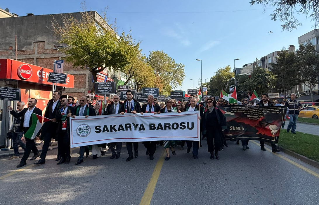 Sakarya Barosu, açıklamasında Gazze’de işlenen insanlık suçlarının acilen son bulması, insani yardımların engelsiz ulaştırılması ve uluslararası hukuk mekanizmalarının harekete geçirilmesi gerektiğini vurguladı.
