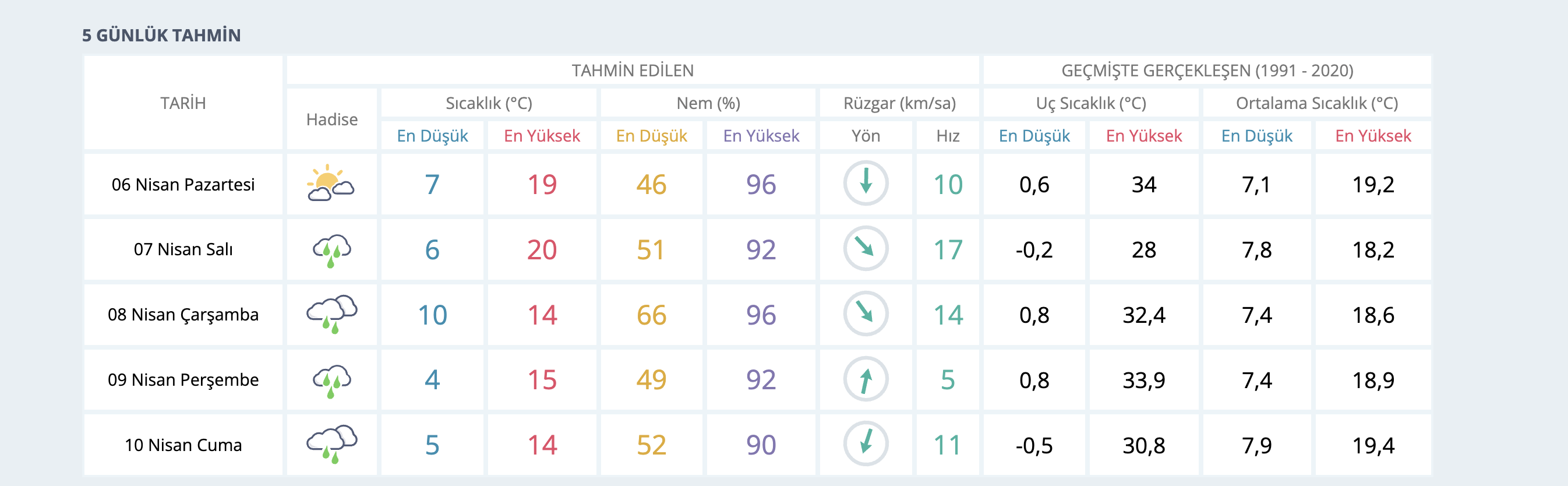 Haftanın ilerleyen günlerinde ise Sakaryalıları yağışlı bir hava bekliyor. 7 Nisan Salı günü sağanak yağış etkili olacak ve sıcaklık 20°C’ye kadar çıkacak. Çarşamba ve Perşembe günleri de yağmur devam ederken, sıcaklıklarda düşüş gözlenecek. Özellikle Perşembe günü en düşük sıcaklığın 4°C’ye kadar gerilemesi bekleniyor.