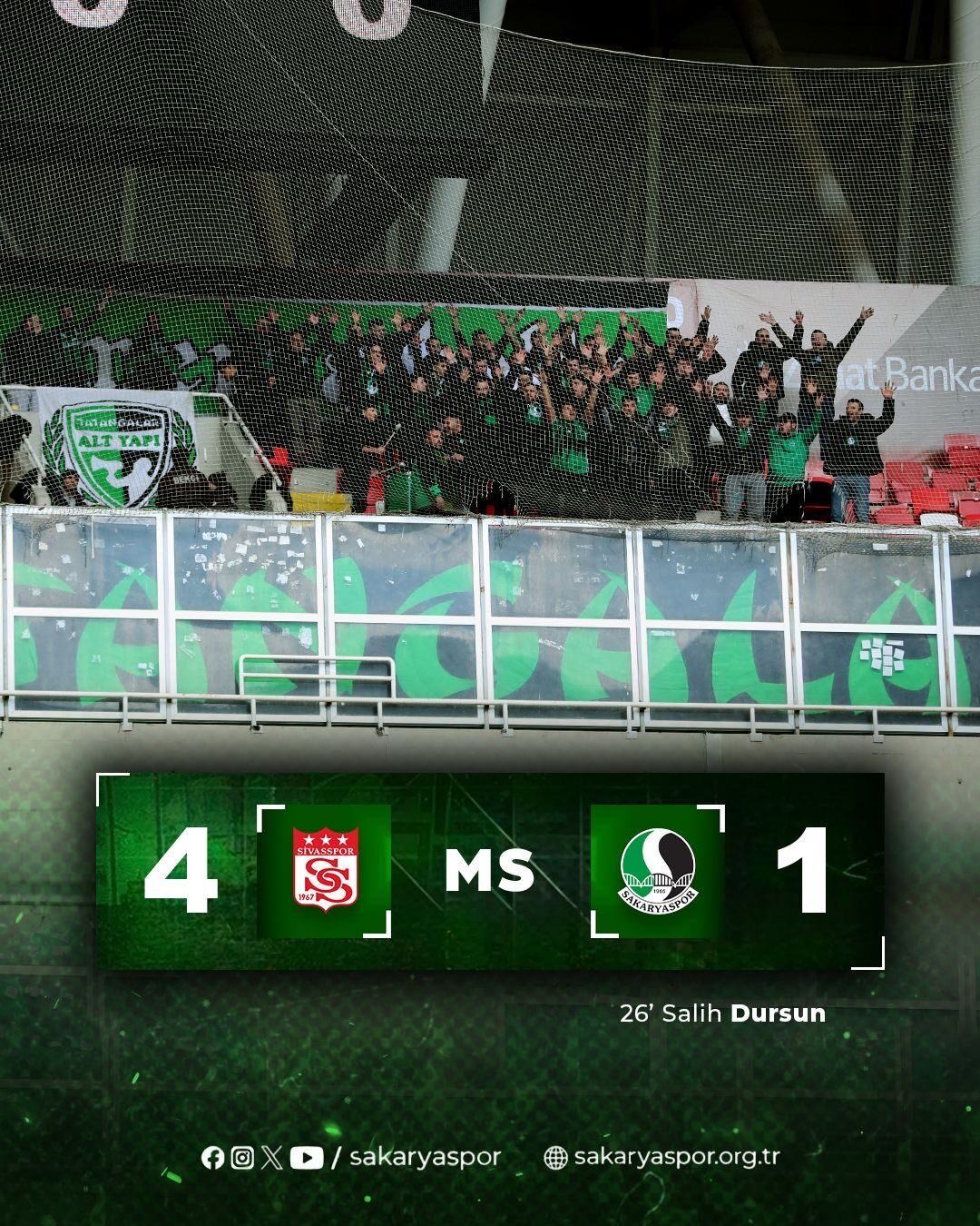 Erken gelen goller sonrası oyunda denge kurmakta zorlanan Sakaryaspor, 25. dakikada duran toptan Salih Dursun’un golüyle farkı ikiye indirdi: 3-1.