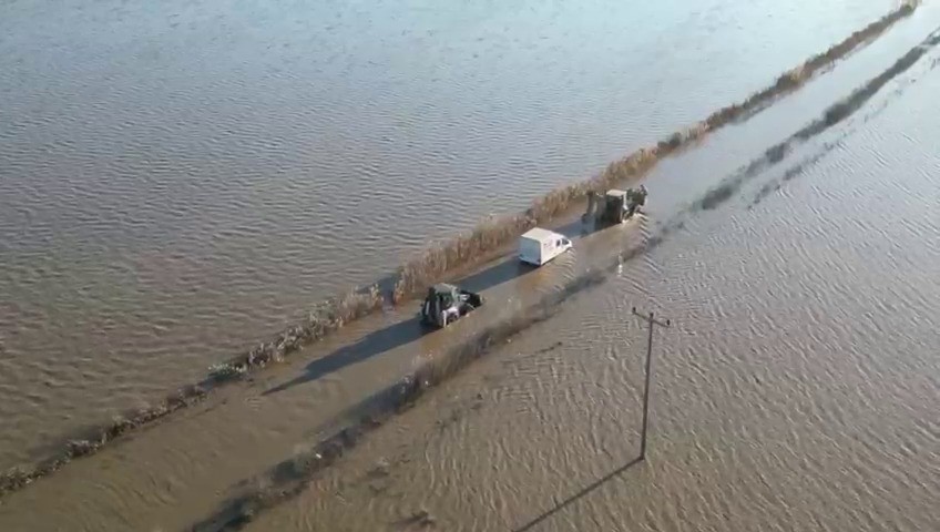Taşkın nedeniyle binlerce dönüm ekili tarım arazisi sular altında kaldı. Çiftçiler büyük zarar yaşarken, yetkililer yolun geçici süreyle ulaşıma kapatıldığını duyurdu.