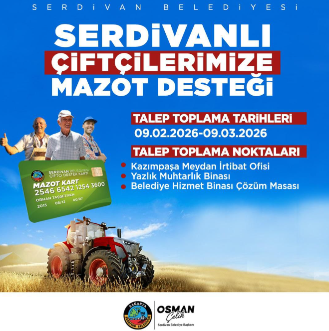 Projeye ilişkin değerlendirmelerde bulunan Serdivan Belediye Başkanı Osman Çelik, ilçede üretimin sürekliliğine önem verdiklerini belirterek hazırlıkların tamamlandığını ifade etti. Talep toplama sürecinin ardından mazot dağıtımının Nisan ayı itibarıyla başlayacağı bildirildi.