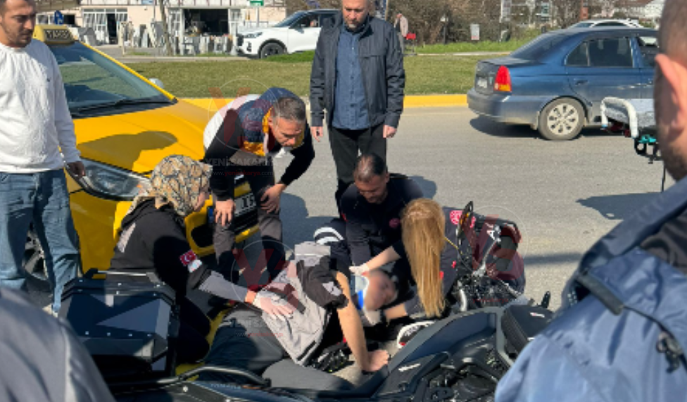 Sakarya’nın Serdivan ilçesi Kazımpaşa Mahallesi girişinde, Yeşil Camii karşısında bulunan kavşakta motosiklet ile ticari taksi çarpıştı. Seyir halindeki motosikletliye çarpan taksi nedeniyle meydana gelen kazada bir kişi yaralandı.