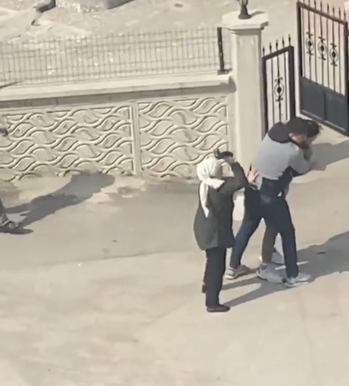 Olay sırasında otomobil sürücüsünün yanında bulunan bir kadın da devreye girerek eline geçirdiği terlikle servis şoförüne vurdu. Sopalar, yumruklar ve terliklerin havada uçuştuğu kavga, çevredeki vatandaşların müdahalesiyle güçlükle son buldu. O anlar bir vatandaş tarafından cep telefonu kamerasıyla kaydedildi.