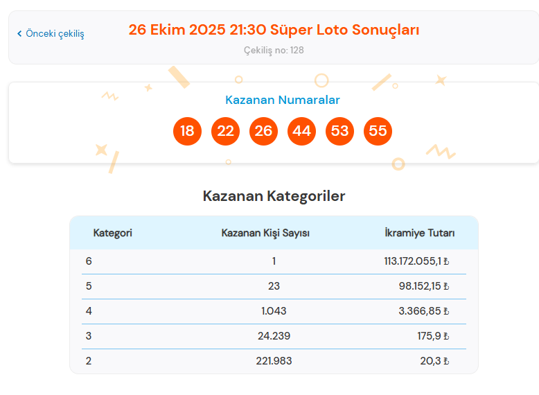 26 Ekim 2025 Pazar Kazanan Numalar:
