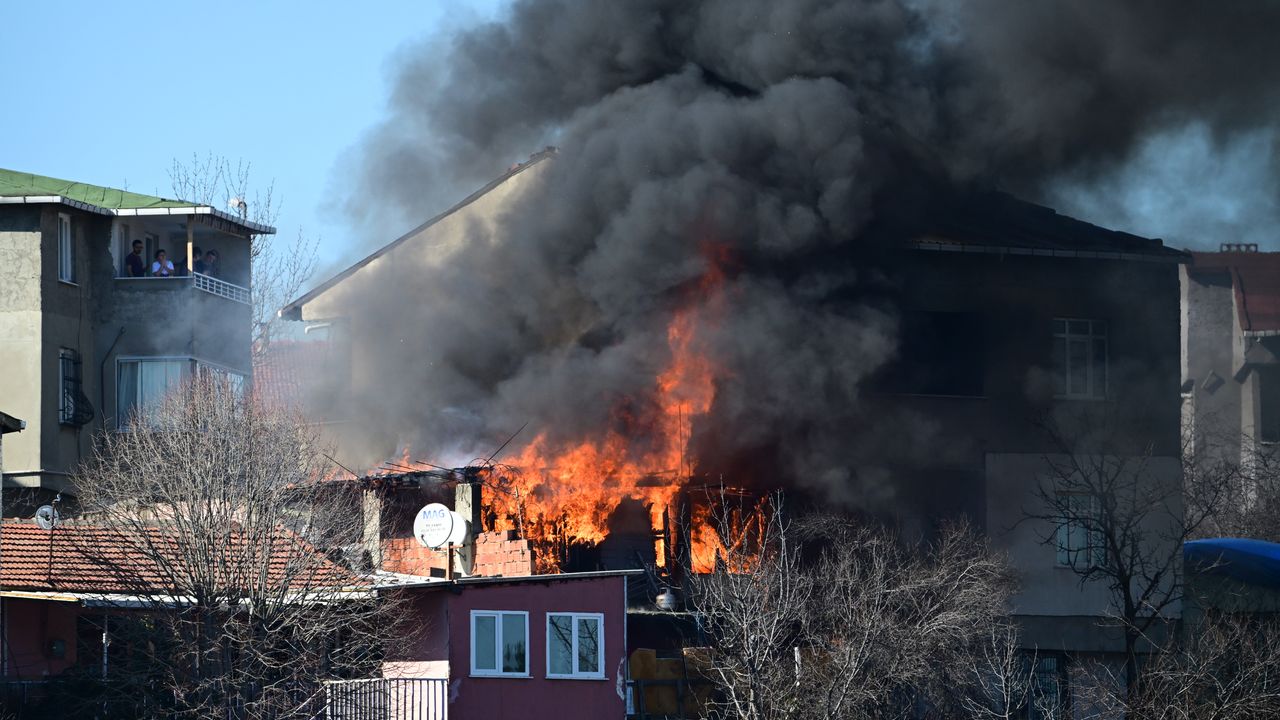 Kısa sürede büyüyen alevler gecekondunun yanındaki 2 katlı evin çatısına da sıçradı. Yangını gören bina sakinleri evi boşalttı.
