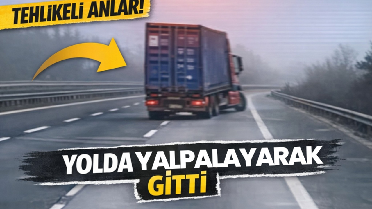 Yolda yalpalayarak ilerleyen tırın arkasından seyreden sürücü, diğer araçların tehlike oluşturabilecek şekilde sollama yapmasını engellemek için aracını kontrollü şekilde konumlandırdı.