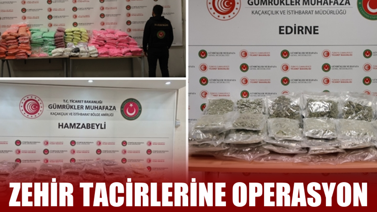 Ticaret Bakanlığından yapılan açıklamada, Gümrükler Muhafaza Genel Müdürlüğü’nün risk analizi, hedefleme ve istihbarat çalışmaları doğrultusunda yürütülen operasyonlar kapsamında önemli miktarda uyuşturucuya el konulduğu bildirildi. Açıklamaya göre Edirne Kapıkule, Hamzabeyli ve Sabiha Gökçen Gümrük Muhafaza Kaçakçılık ve İstihbarat birimlerince yürütülen çalışmalarda;